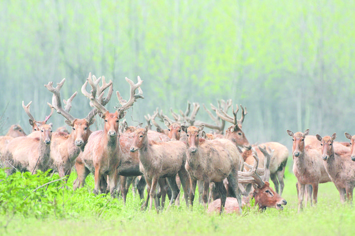 逐渐增多的麋鹿成为洞庭湖湿地生态环境日益向好的最佳“代言者” 姚 毅 摄