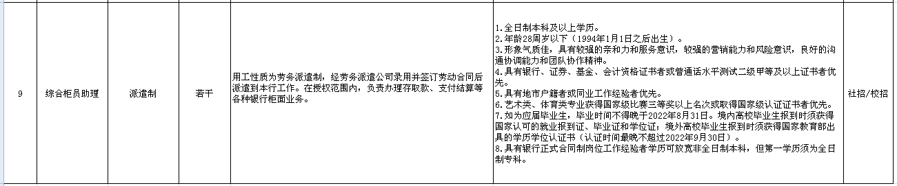 (五)分行校招生、综合柜员助理岗位可以投递2个地区志愿,其他岗位仅限投递1个岗位志愿。
