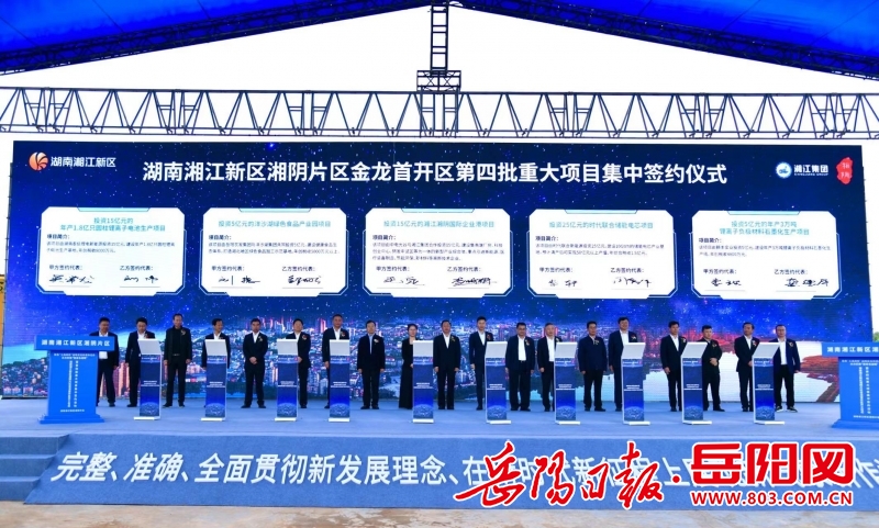当日活动现场,湘阴片区还有12个项目共同开工,总投资59亿元;10个产业项目集中签约,总投资161亿元,涵盖新能源、新材料、绿色食品等领域。