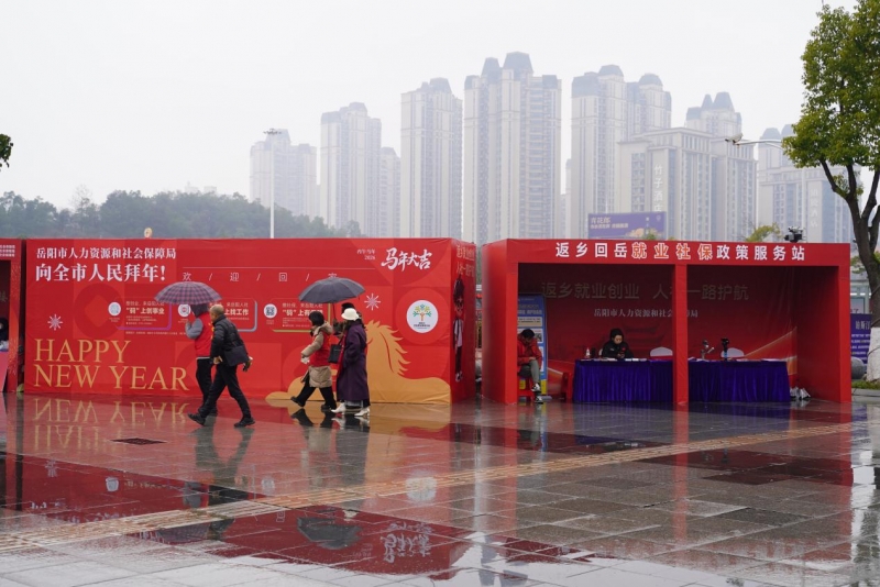 一抹亮眼的“人社红”格外醒目——岳阳市人社局“返乡回岳就业社保政策服务站”静静伫立,鲜红的展位、喜庆的拜年展板,连同工作人员温暖的问候,为每一位风尘仆仆的归乡游子,送上了回家后的第一份暖意。