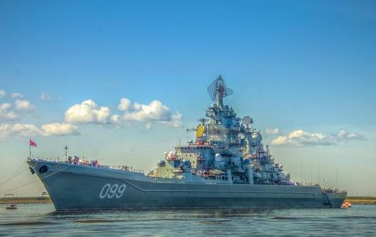 说到排名第一,那就只有俄罗斯的1144型级巡洋舰,也被称为基洛夫级巡洋舰,该舰是俄罗斯海军的大型核动力导弹巡洋舰。满载排水量超过2.5万吨,舰上装载超过400枚导弹,因此有“武库舰”的称号,是世界上唯一排水量超过两万吨及使用核动力的现役巡洋舰。(目前俄罗斯唯一在役的1144型巡洋舰是彼得大帝号,图为2017年海军节摄)