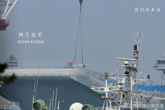 此外,可以看到89号保障船甲板上开始由海军人员活动了。这些迹象表明,89号保障船要动了,而随之传递的信号就是国产航母也要动起来了。