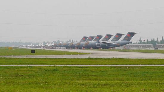 6架已服役的运-20同框。这是目前空军运-20曝光数量最多的一次。图片来自网络,感谢作者。