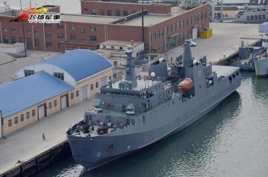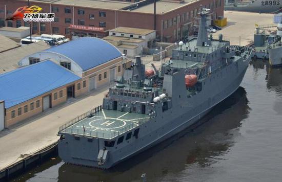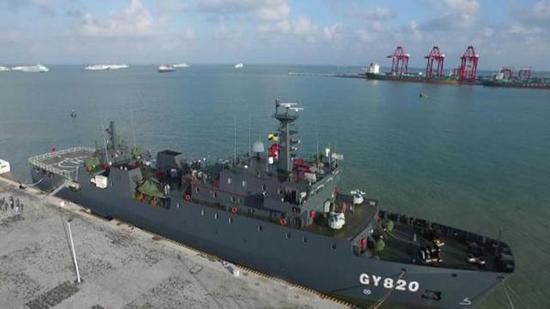 这种综合保障船,实际上是一种滚装船,舰艏和尾部都有跳板和贯通式装卸甲板,尾部还有一个直升机起降甲板,4门23或30mm舰炮(GY820船)防身,目前陆军一共有2艘这型舰艇,一艘在北部战区,另一艘GY820船在三沙,具备大型装备成建制输送能力,主要担负三沙方向物资补给、装备输送和海上救援等。