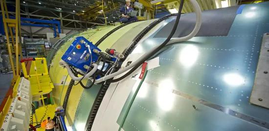 空客的飞机装配工厂,几乎看不到人,一架飞机装配线上总人数不到20,原因就是采用了自动钻铆机,将大部分过去人工干的活都自动完成了,就剩下小部分工作。