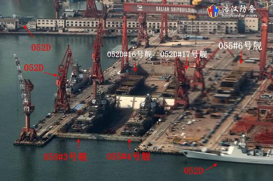 当然,从大连厂建造055舰的船坞卫星地图来看,其实他们即便采用传统视觉效果最佳的滑道下水法也不会带来太严重的后果,但是作为一个直接面向大海的大型船坞,其实建造055只用了这个船坞一半的长度,而且宽度上还是同时开工两艘。