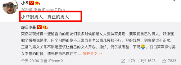 7月12日,沉默了很久的汪小菲不忍大S撒娇,发文实力护妻称:“很多时候女人要做家务活,要取悦自己的男人,好像连撒个娇都说是作,问个问题都像不正常当着老公面儿哭都不行,到底是谁不正常。”