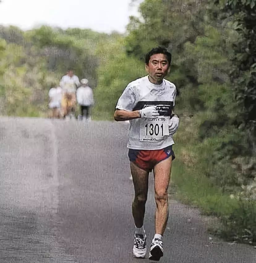 他留着小男孩发型,穿着一套专业运动服,脚踏阿瑟士的轻便跑鞋。从他健硕的手臂肌肉上,你大概很难想到他是一个69岁的人。