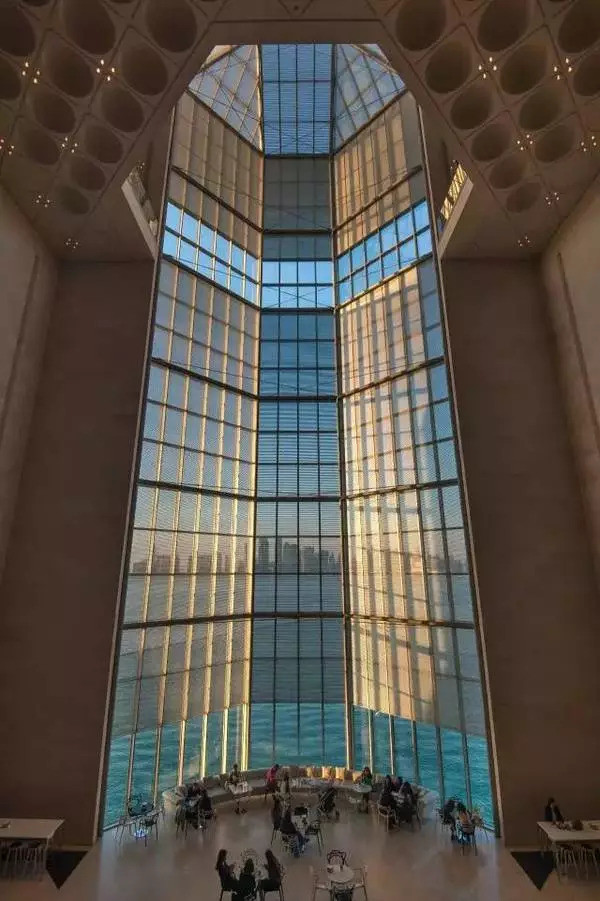 多哈伊斯兰艺术博物馆位于卡塔尔首都多哈海岸线之外的人工岛上﹐占地4.5万平方米,是迄今为止最全面的以伊斯兰艺术为主题的博物馆。博物馆外墙用白色石灰石堆叠而成,折射在蔚蓝的海面上,形成一种慑人的宏伟力量。而再看建筑的细部,典型的伊斯兰风格几何图案和阿拉伯传统拱形窗,又为这座庞然大物增添几分柔和,稍稍中和了它的英武之气。博物馆中庭偌大的银色穹顶之下,150英尺高的玻璃幕墙装饰四壁,人们可以透过它望见碧海金沙。