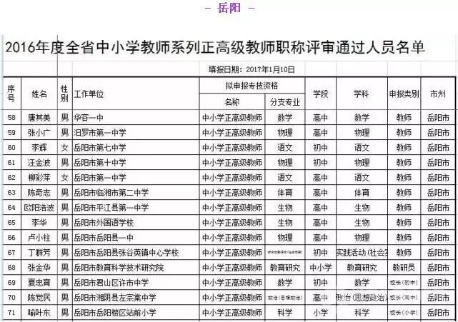 据江湖那些事(yyrbjh)了解,此次公示的正高级中小学教师中,岳阳市有14名。此次我市进入公示名单人数在全省地州市中,仅次于长沙市。