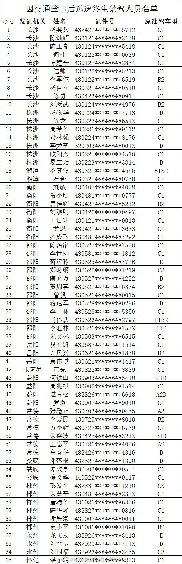 这91名湖南驾驶员被终生禁驾 有你认识的吗?