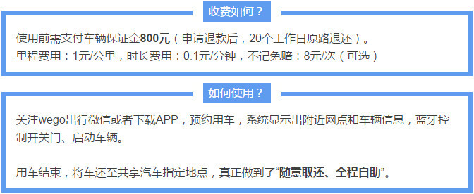 车辆停放we go网点范围内,免停车费,如不在we go停车范围内,则由用户承担停车费用。