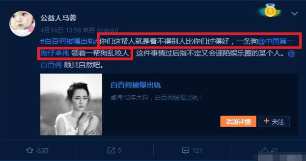 而就在王宝强离婚事件即将消失在人们的视野之后,马蓉突然高调复出,300万卖掉微博大V号从事慈善事业,并邀请众多娱乐圈明星加入其中,甚至在自己的新微博中攻击王宝强,博得网友信任,言辞犀利令人咂舌!