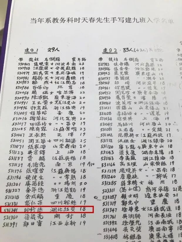 ↑ 清华大学建筑系(1953级)纪念册中,记录了帅修德的名字