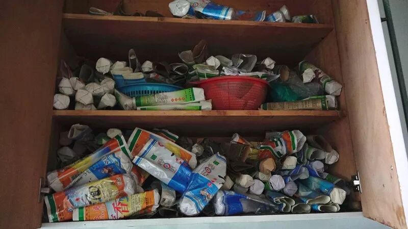吃过的挂面袋子堆满一壁橱