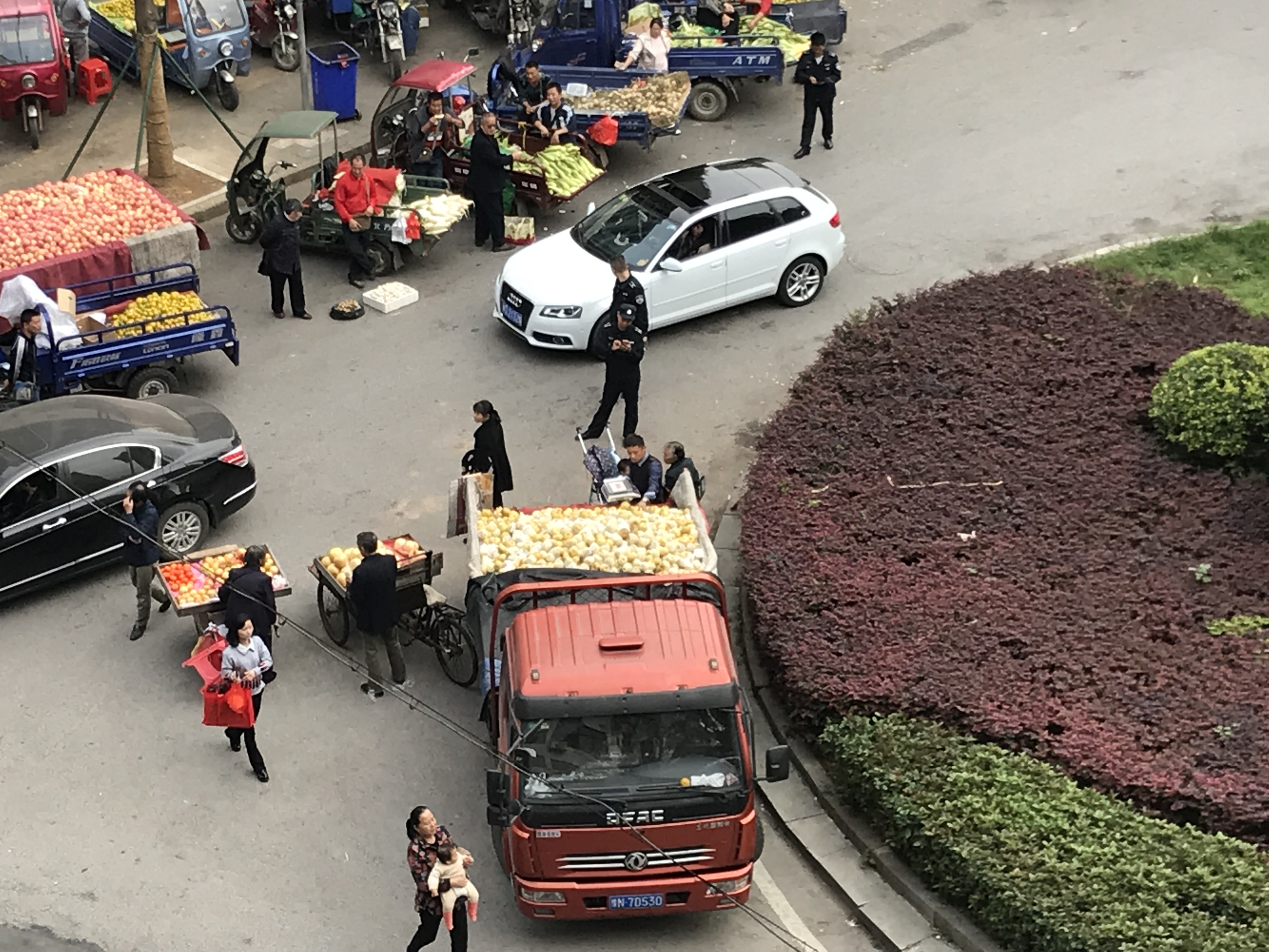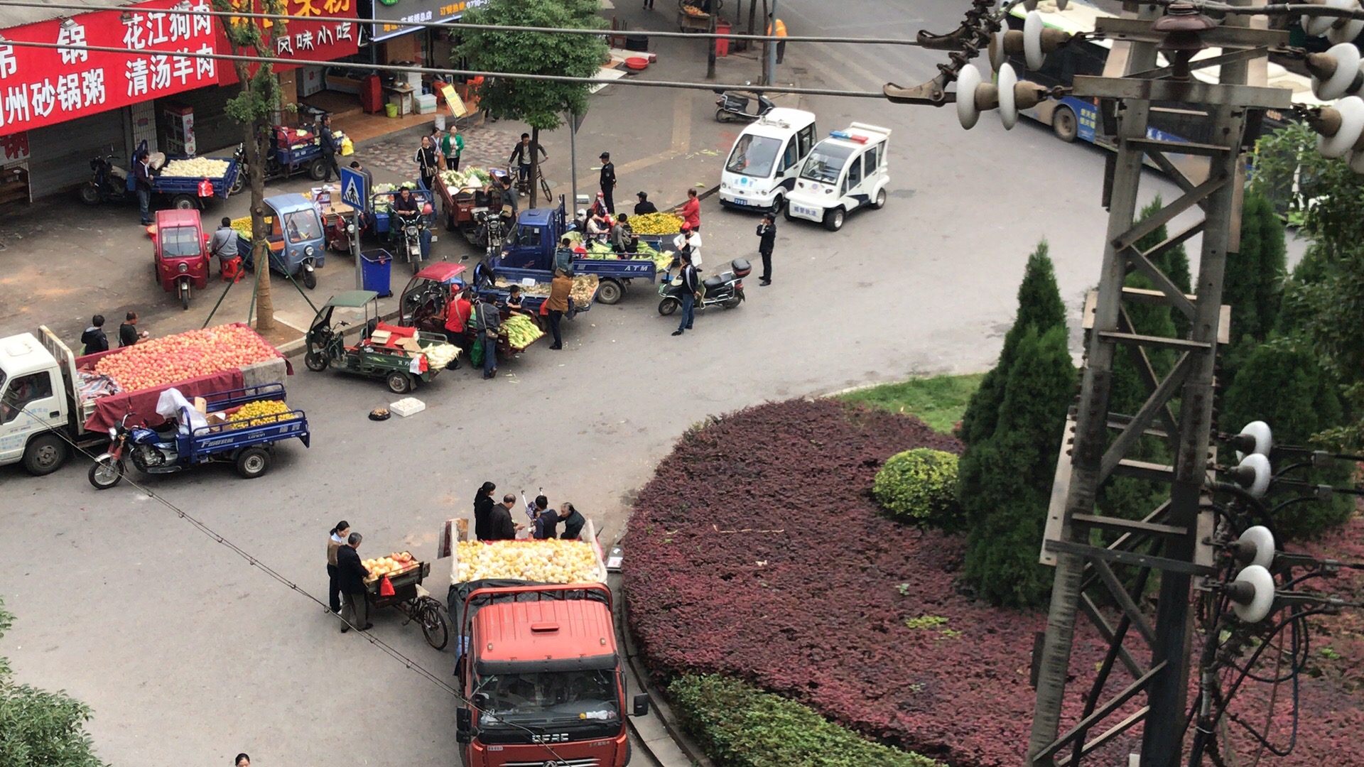 从文明城市复查以来,花板桥菜市场的流动摊贩被赶至花板桥公交总公司门口转盘处占据人行道和机动车道违规经营,并且用高音喇叭宣传,严重影响我市文明城市形象,也影响到花板桥周边居民的工作及生活。有现场图片为证,城管队员在场也没有制止及驱逐的意思。希望政府相关部门能尽快处理违规经营现象,还市民一片蓝天。 |