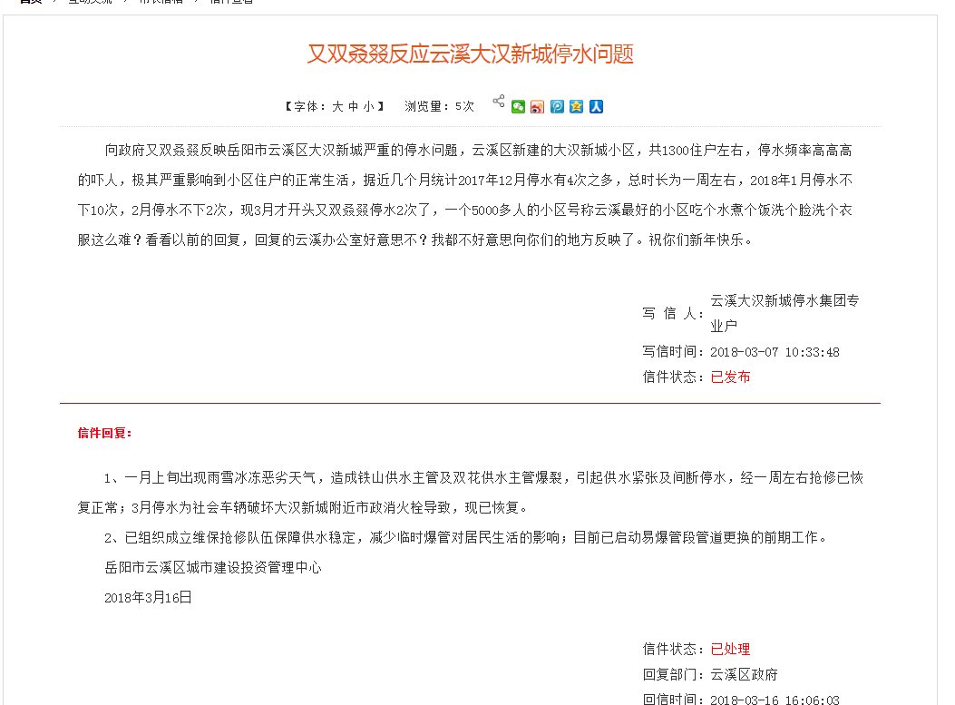 | 回复部门:云溪区政府回信时间:2018-06-07 16:05:26满 意 度:无反馈 |