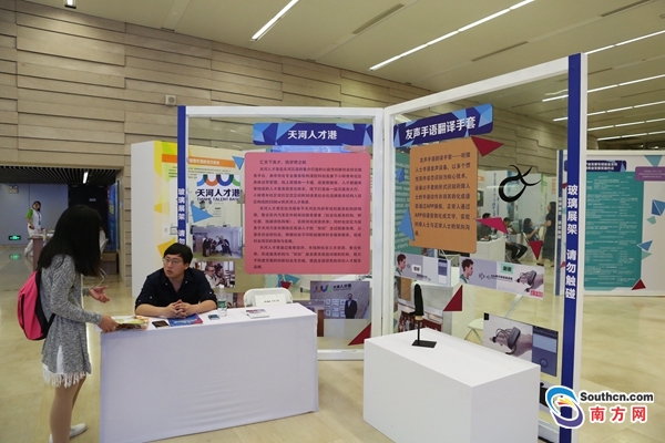 来自广东技术师范学院的10名大学生组成创业团队,带来了一款神奇手套,每只手套都集成了可以记录手势动作的传感器,可识别手语并进行语音翻译播报,展示了强烈的人文关怀。