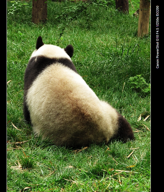 再来一个落魄销魂的。不过很明显可以看出,其实纯黑白的熊猫基本是不存在的……遍地打滚乱蹭又没法跟宠物一样每周每月的洗香香,月亮的背面不美丽啊亲。