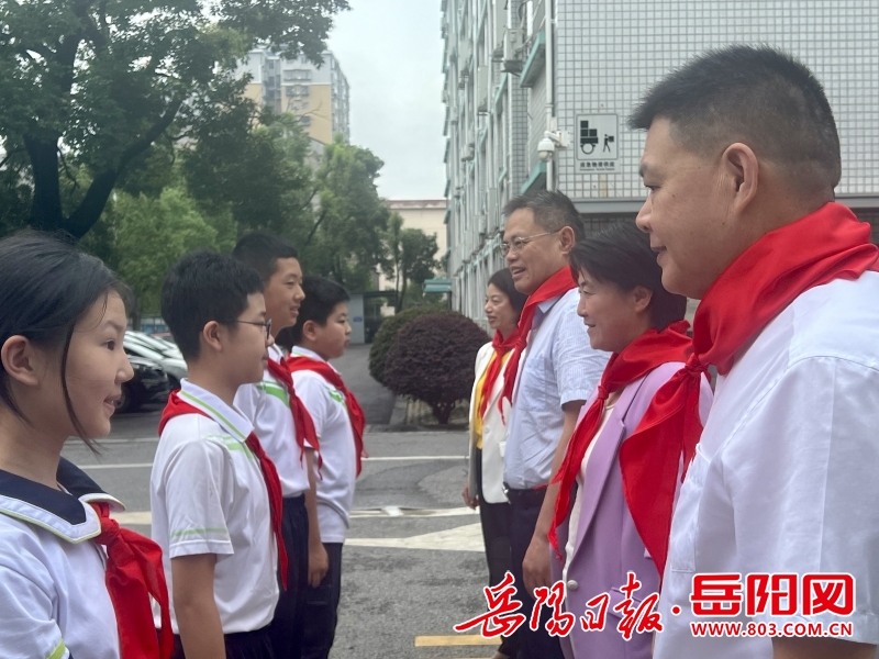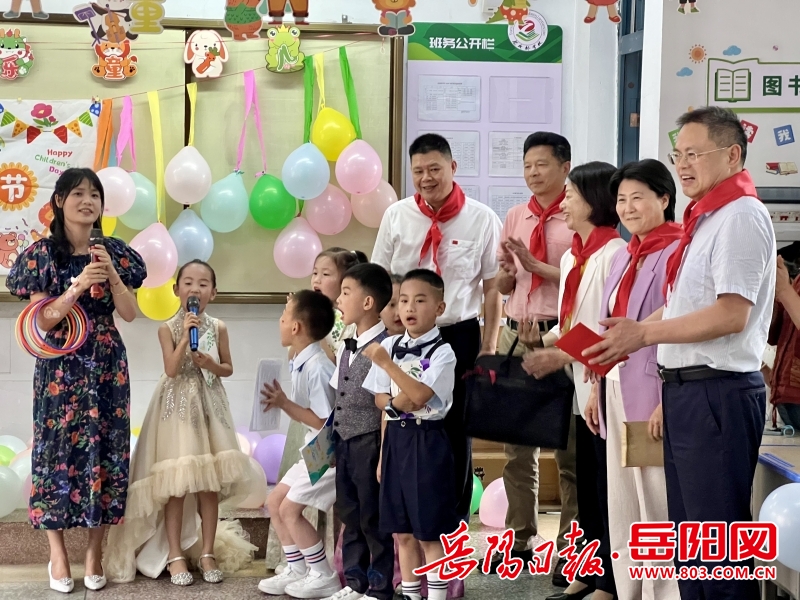“祝小朋友们健康成长、节日快乐!”在岳阳楼区花板桥学校,孩子们亲手给慰问组成员系上红领巾并敬礼。大家参观了解了该校清廉文化墙上的版画、水墨画、水彩画等各色学生作品,并走进各班庆“六一”活动现场,为孩子们送上节日祝福。来到长炼童之梦幼儿园,慰问组一行与该园负责人亲切交谈,详细了解园内软硬件建设情况,查看教室与食堂设施,并参观走访学校“种植角”,对该园儿童日常劳动实践活动开展情况表示充分肯定。走进经开区东城小学,一场主题为“欢乐六一儿童节”的校园艺术节优秀节目展演暨六一庆祝活动正在热烈进行,孩子们活力满满的歌舞演出赢得了大家的掌声与鼓励。