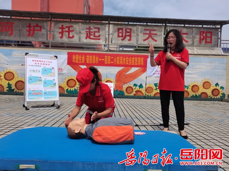 岳阳日报全媒体讯(通讯员 范娟)为进一步提高学生防溺水安全意识和自我保护意识,有效预防和杜绝溺水事故的发生,切实保障学生生命安全,6月12日,屈原管理区第二小学联合区红十字会举行了“珍爱生命 谨防溺水”安全应急演练活动。