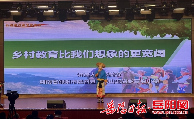 “我是隆回教育史上从县城调往偏远山区的第一人。”“就算我只有一只手,也能托起乡村孩子的求学梦。”“我的学生,一个也不能少!”……报告会现场,隆回县虎形山瑶族乡草原小学校长谭美珍身穿瑶族服饰,展望山区孩子们的光明未来;南华大学教师郑宇娓娓道来,讲述自己如何成为孩子们信赖的“宇哥”;扎根基层教育一线36载的益阳市南县实验学校党支部书记、校长孟玲面带微笑,深情介绍师生共同打造的“疑悟课堂”“诗意教育”;用左手写板书29年的娄底市双峰县锁石镇中心学校独臂校长王小义眼含热泪,动情诉说自己如何扎根乡村,带领孩子们走出大山;醴陵市陶瓷烟花职业技术学校教师林利数度哽咽,讲述自己以爱育人、以情动人,用真诚与爱照亮学生的故事。