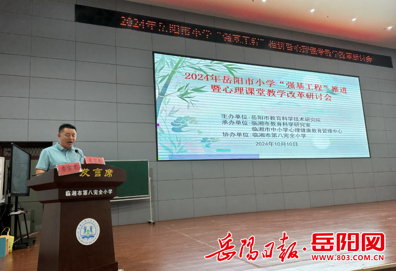 岳阳日报全媒体讯(通讯员 李黎明 毛红艳)10月10日,岳阳市小学“强基工程”推进暨心理课堂教学改革研讨会在临湘市第八完全小学举行。来自全市各县市区的小学的心理教育工作者们齐聚一堂,共同探讨小学教育的强基之路与心理课堂教学改革的新方向。