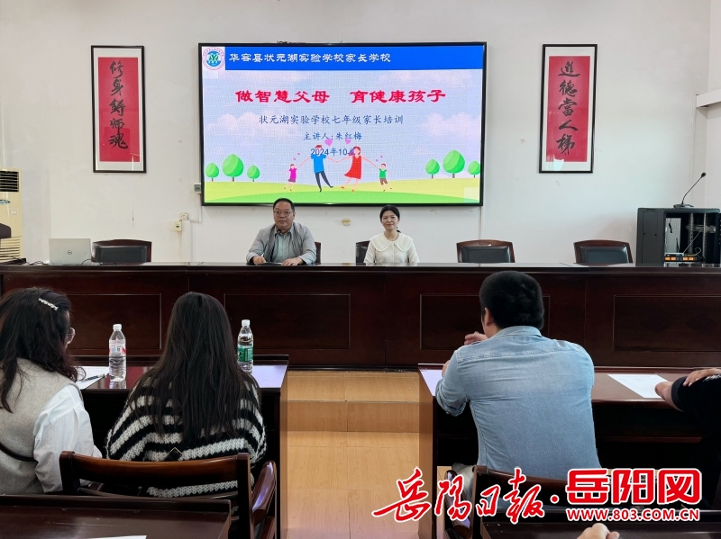 岳阳日报全媒体讯(通讯员 严竟菲)为了加强家校合作,整合教育资源,助力七年级新生更好地适应初中生活,10月29日,华容县状元湖实验学校举办了主题为“做智慧父母 育健康孩子”的七年级家长培训会。七年级部分家长以及来自全县各学校的42名家庭教育指导培训师参与了此次会议。