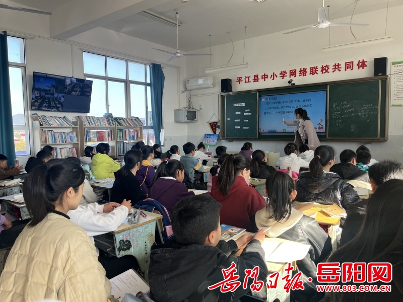 岳阳日报全媒体讯(通讯员 陈广文 蔡清琳)11月29日,平江县第五学区教育事务中心小学数学骨干和区名师工作室成员及六年级数学教师共36人,齐聚平江县向家镇梅树小学,正通过网络联校教室的精彩课堂,与区域内盘塘小学、白杨小学、栗山小学的师生们开启了同步网络课堂直播活动。