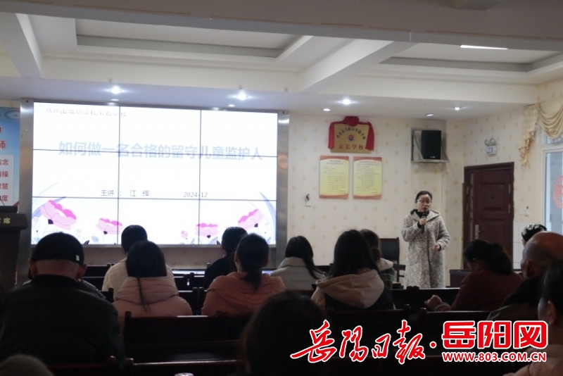 华容县家庭教育培训师江辉老师带来了《如何做一名合格的留守儿童监护人》的精彩讲座。江辉老师从留守儿童现状分析、监护人的职责与角色、提升监护能力的方法与技巧、关注留守儿童的心理健康与成长四个方面展开阐述,结合学生的特点和表现与家长进行交流,并就学生的学习习惯、能力培养、家庭教育、心理健康教育等方面为家长们提出专业、实用、有效的建议,希望各位监护人能够珍惜与孩子们相处的每一刻时光,用心去感受他们的成长和变化,为留守儿童撑起一片爱的天空,让他们在爱的阳光下茁壮成长。