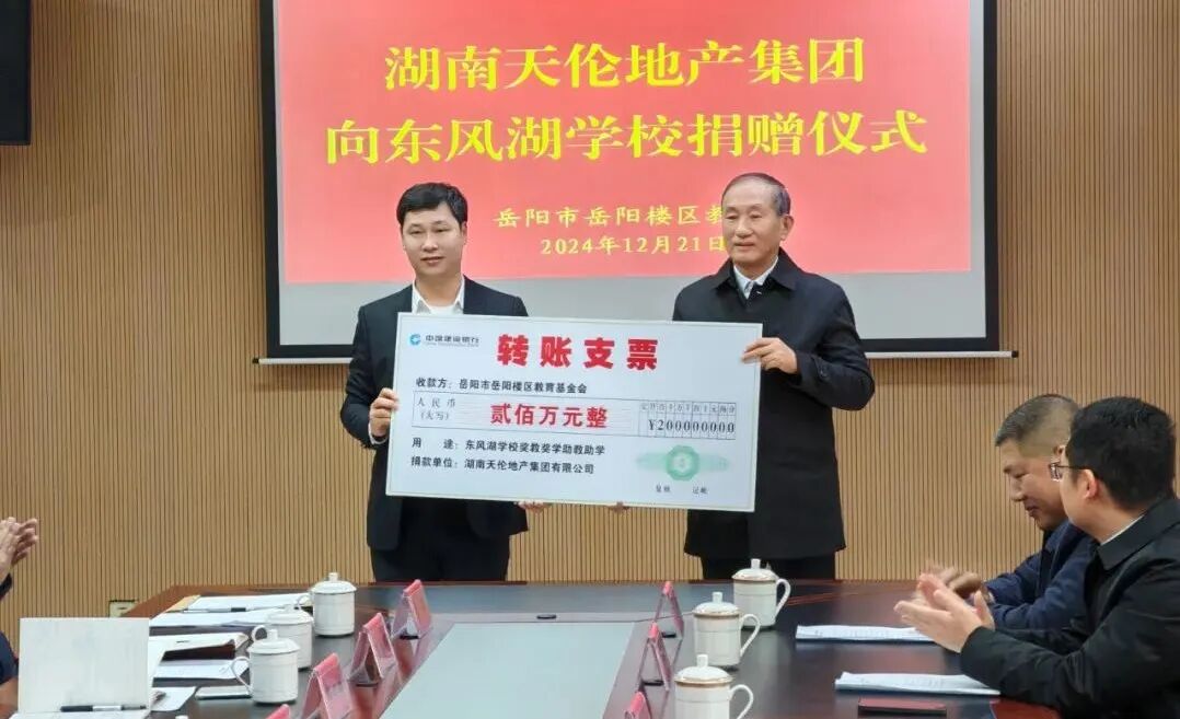 回溯过往,天伦地产作为岳阳地产行业的标杆房企,品质深耕二十载,始终坚守责任与担当,与岳阳发展同频共振,不仅聚力助教兴学,更在推进共同富裕、推动乡村振兴中积极有为。在董事长林才金的带领下,天伦地产积极参与扶贫济困、防汛抗疫、农村公路、水利建设、助残助学、乡村振兴等公益活动,累计捐资达1800万元。