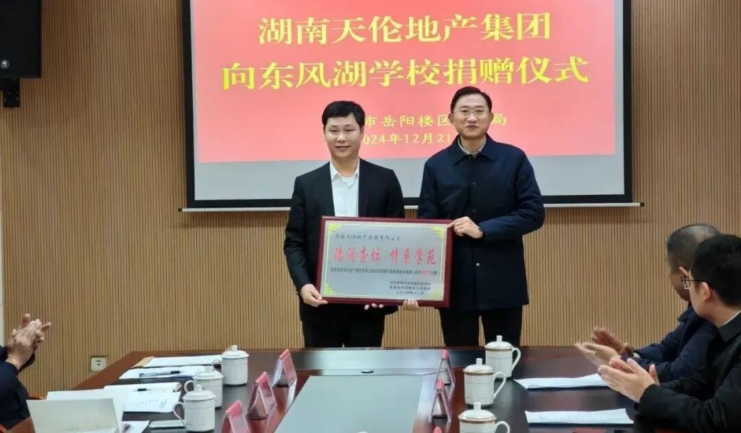 岳阳楼区委副书记、区长白再兴,岳阳楼区委常委、副区长邓建华,湖南天伦地产集团董事长林才金,岳阳楼区教育基金会理事长彭端生等领导出席捐赠仪式。