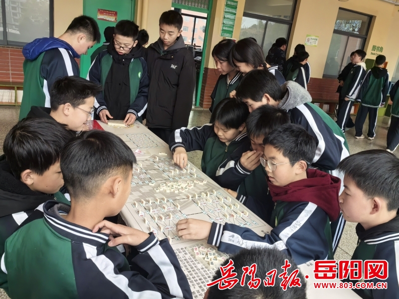 许多学生们手执棋盘,快步奔向各个楼层的棋艺平台。短短15分钟里,蓝色座椅,贴着五子棋、象棋、军棋和围棋格子的桌面成了他们快乐的源泉。学生们两人一组,三人一队,围着棋盘大杀四方,棋子啪啪作响,棋盘中硝烟四起,杀声震天。赢了的同学神采奕奕,输了的同学口服心不服,要求再杀一盘。围观的同学有的故作高深,不发一语。有的吆三喝四,指手画脚。有的干脆当起吃瓜群众,旁观好戏。假如有爱好棋艺的老师经过,好胜的学生们定会拉着老师一决胜负。一时间,争辩声,指点声,哄笑声与棋子敲桌声混在一起,共奏一曲青春的交响。