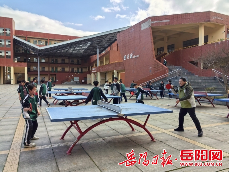 逢上大晴天,一、二楼的乒乓球台旁更是人声鼎沸。老师们挥舞着球拍与学生们打成一片,观众们欢呼着、雀跃着,尽情释放快乐。在这里,活泼好动的学生们释放了多余的精力,久坐办公室的老师们舒活了筋骨,一个个青春焕发、笑容满面。