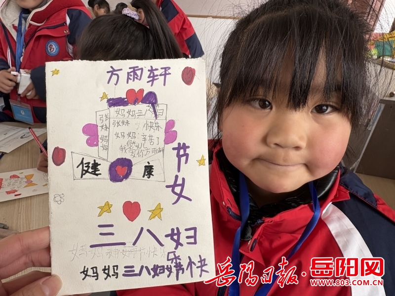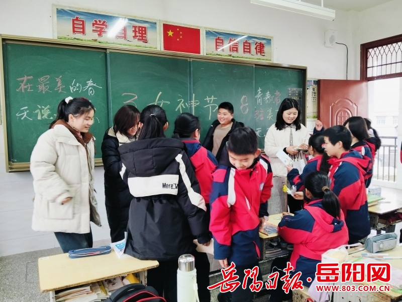 岳阳日报3月7日讯(通讯员 何万兴)“老师,您辛苦了。”“节日快乐,我们的女神!”3月7日,平江县保全学校六年级教室里,学校开展的“‘3•8’魅力女神节送祝福活动”热闹非凡,掌声雷动,欢声笑语。孩子们把早早准备的贺卡送给了女老师,让她们感受节日的快乐与温馨。