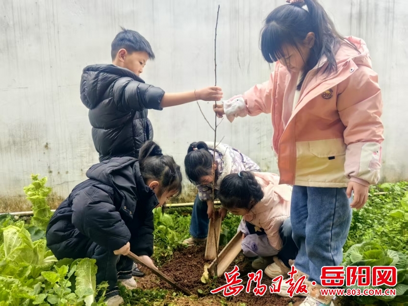 岳阳日报3月12日讯(通讯员 李嘉迪)“我来挖土,我来扶着小树苗,我来覆土,小树苗快快长,我来给你把水浇!”3月12日是一年一度的植树节。为了让孩子们能够积极与大自然环境“对话”,亲身体验劳动的乐趣,平江县第二学区幼儿教育中心加义幼儿园植树节当天开展了植树节主题教育活动,让孩子们在万物复苏的春天里播种植树,收获劳动的快乐,体会绿色大自然的美妙。