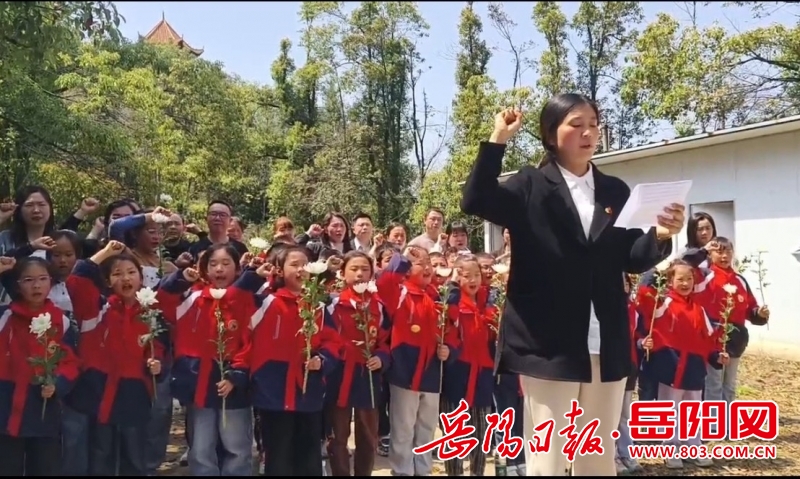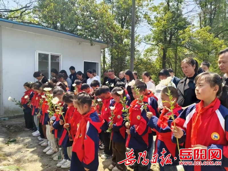 岳阳日报4月3日讯(通讯员 罗婷)清明时节,翠柏凝春。为弘扬爱国主义精神,传承红色基因,平江县瓮江镇中心小学二年级3班全体师生及家长于4月1日前往瓮江腾云山烈士公墓,开展“缅怀革命先烈,传承红色精神”主题祭扫活动。