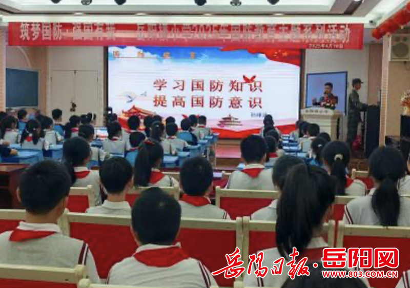 岳阳日报4月18日讯(通讯员 李宏亮 柳路)为厚植家国情怀,强化国家安全意识,今年4月,岳阳楼小学开展《筑梦国防 强国有我》主题教育活动,通过沉浸式国防讲座、军营探访、军事训练等多元形式,为全校2200余名师生打造立体化国家安全教育体系。