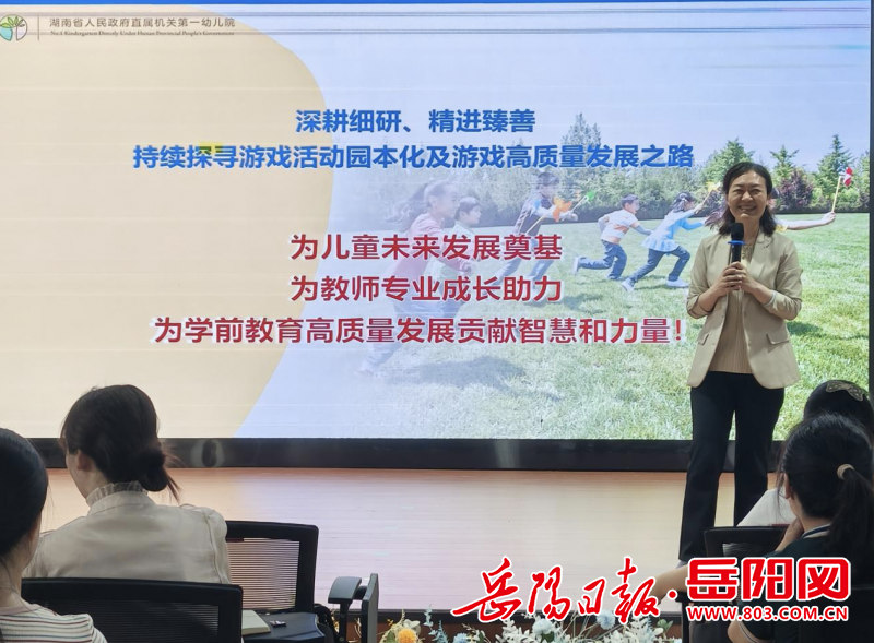 湖南省人民政府直属机关第一幼儿院院长、高级教师侯俪在点评中指出:“三位教师的教学充分体现了情景化、游戏化的特点,通过多领域整合实现了高质量教学目标。”随后,侯院长作《多元驱动,深耕实践》专题讲座,结合省直一幼自主游戏的实践经验,从场地改造、材料投放到教师研训,系统分享了游戏活动园本化的实施路径,为参训教师提供了可操作的实践范本。相关负责人表示,下阶段,岳阳县将持续深化幼儿园游戏化课程改革,通过“走出去、请进来”等方式,打造高素质幼师队伍,推动学前教育高质量发展。
