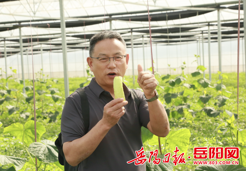 在蔬菜种植大棚,黄哲团队重点考察了樟树港辣椒和富硒黄瓜的长势。作为国家地理标志产品,樟树港辣椒对生长环境要求严苛,黄哲教授俯身查看叶片纹路,指出:“当前正值坐果期,要通过叶面喷施有机硒肥提升辣椒硒含量,同时采用防虫网+诱虫灯的物理防控组合,确保‘辣香浓郁、硒量充足’的双重品质。”随行的教师团队同步记录数据,为建立富硒蔬菜标准化种植手册积累素材。