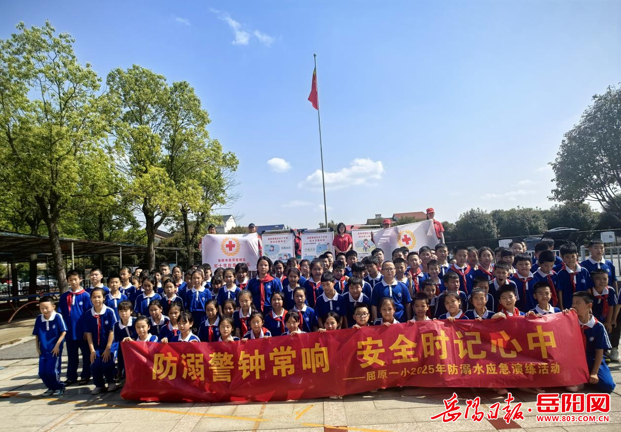 岳阳日报5月10日讯( 彪丽芳 柳斯平)5月9日下午,岳阳市屈原管理区第一小学联合区红十字应急救援大队在学校操场开展防溺水应急演练,全校师生通过“知识讲解+ 实操演练”筑牢安全防线。