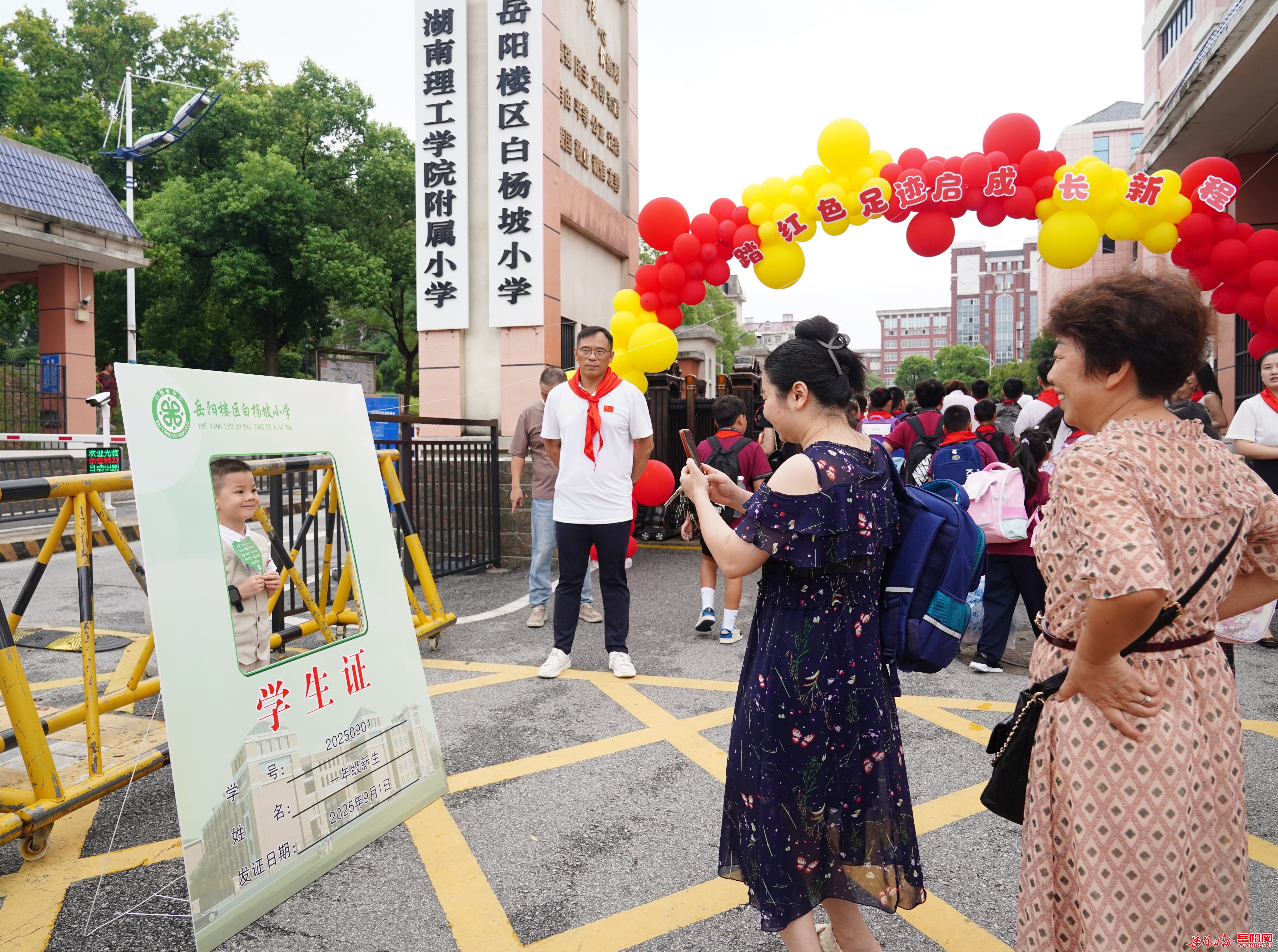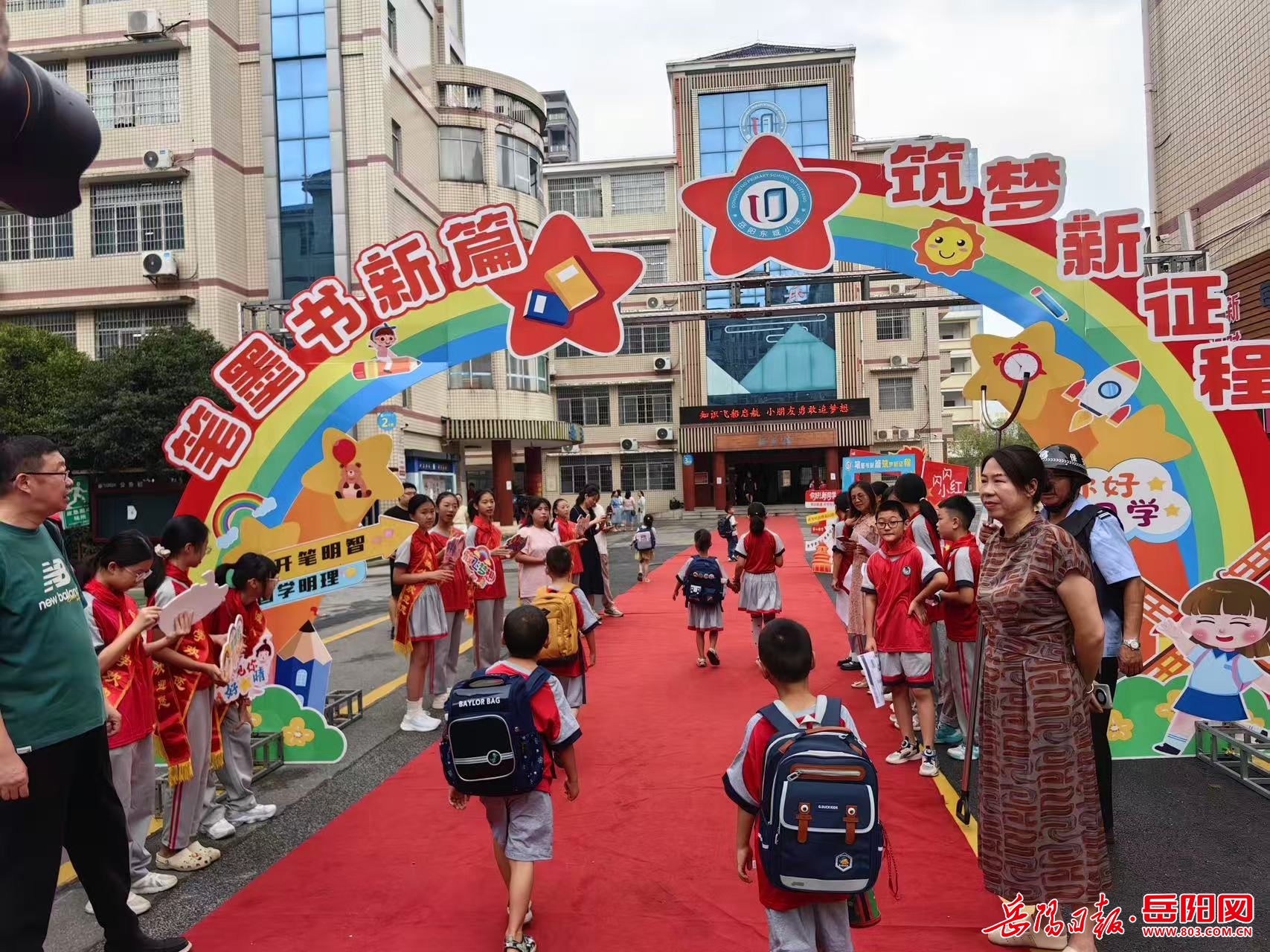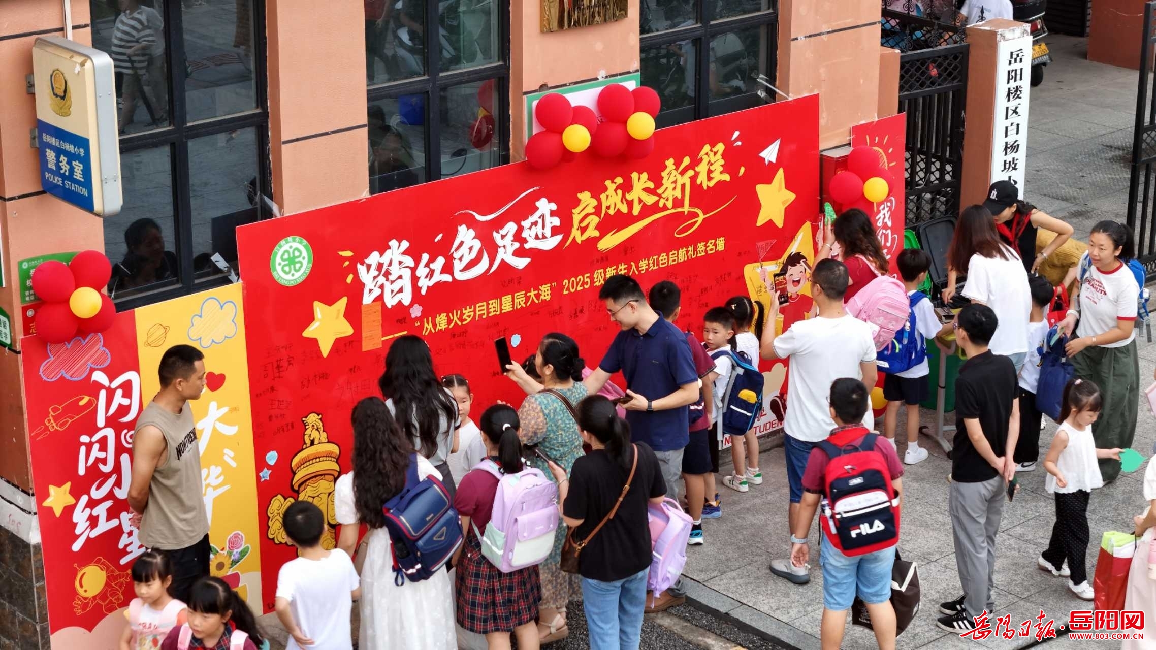 “来这里按个手印,和革命先烈隔空击掌!”9月1日清晨,岳阳楼区白杨坡小学校门敞开,一年级新生在家长陪同下走进校园。在老师引导下,孩子们参观展板,聆听先烈故事,在感悟革命精神的过程中厚植爱国情怀。当天,学校还举行了隆重的开学典礼,在庄重而热烈的氛围中,“小萌新”们以稚嫩的脚步踏入崭新的小学生活,开启充满希望的新学期。