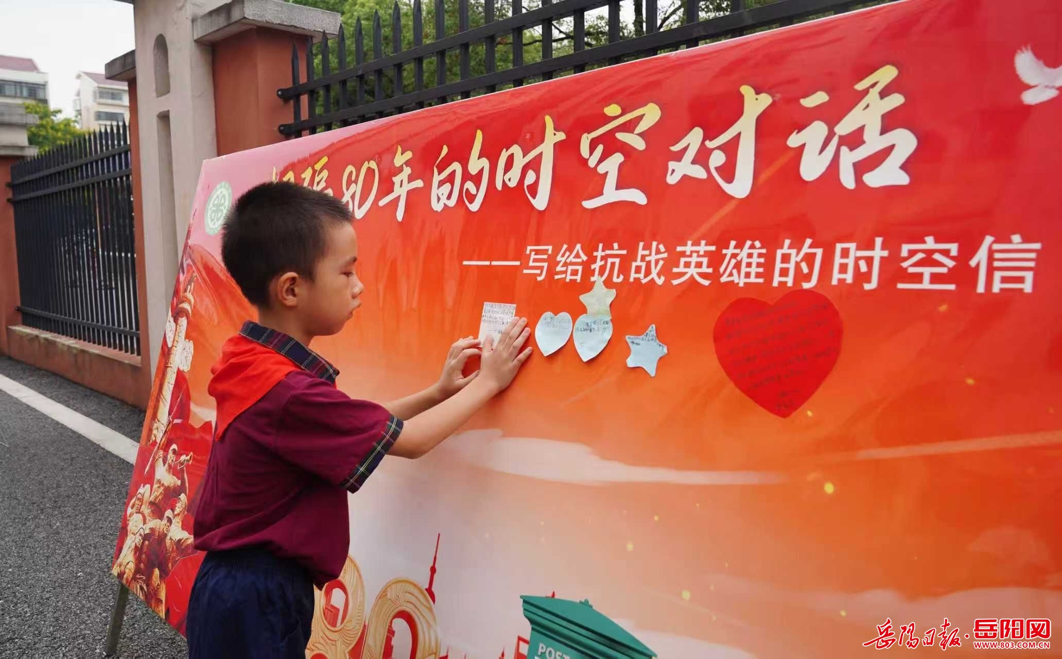 抗战胜利80周年之际,孩子们用稚嫩的笔迹贴上对抗战英雄的时空信。(彭正阳 摄)