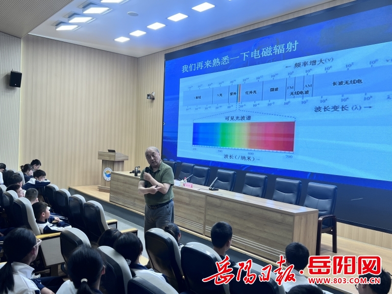 岳阳日报9月25日讯(全媒体记者 刘燕妮)“人类生活在一个辐射无处不在的环境中,辐射本身不是“洪水猛兽”,大家不要谈辐射色变,没有辐射就没有我们今天的生活。”9月23日上午,中国科学院老科学家、中国光学学会理事刘大禾教授一行应邀来到岳阳市第二十中学,为师生们带来了一场题为《辐射漫谈》的精彩科普报告。