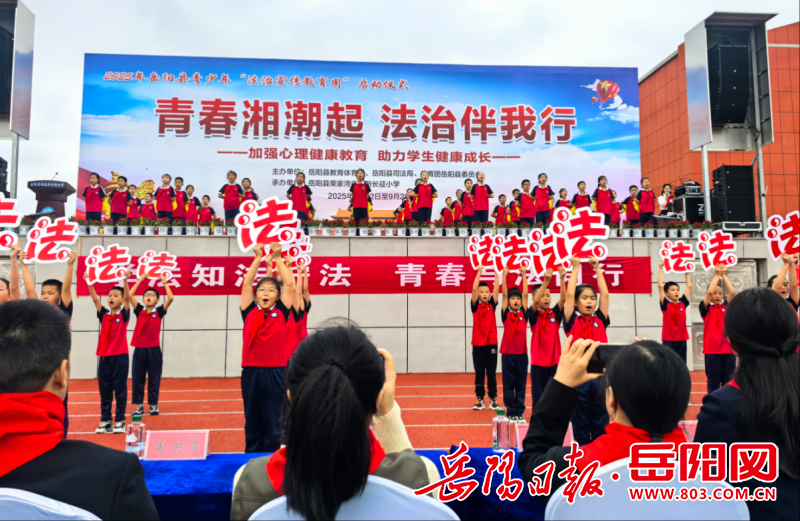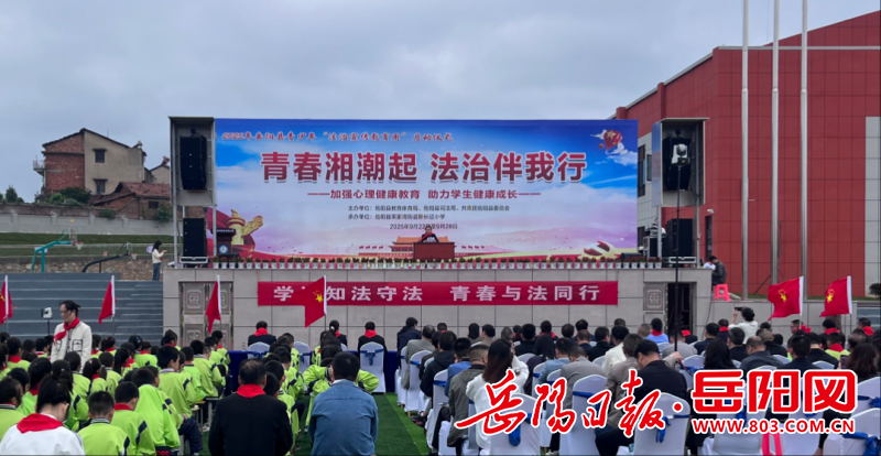 岳阳日报9月25日讯(全媒体记者 唐忠明 通讯员 孙碧霞 李振远)9月24日,岳阳县2025年青少年“法治宣传教育周”县级主场活动在新长征小学举行。本次活动全程网络直播,全县数万名师生同步收看。县委政法委、县人民法院、县人民检察院、县教体局等多部门相关负责人,各县直学校、乡镇中心学校分管法治教育副校长、志愿者参加。