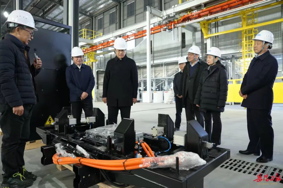 1月7日下午,谢卫江、李挚在上海玖行新能源重卡换电系统智能制造项目调研。