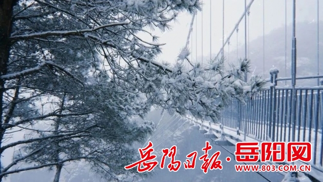 来到位于平江石牛寨镇的石牛寨景区,你可以沿着步道一路前行,山上的树枝、树叶被层层白雪裹住,银装素裹,丝毫不输北国的千里冰封、万里雪飘;你可以踩上高空玻璃桥,300米全透明桥面被白雪覆盖得严严实实,走在上面真有种漫步云端的错觉;你可以登上“悬崖天眼”,远眺那披上素白外衣的丹霞岩壁,一伸手似触碰云端。