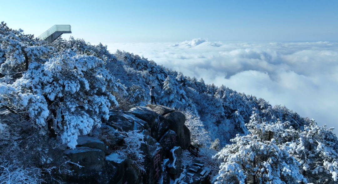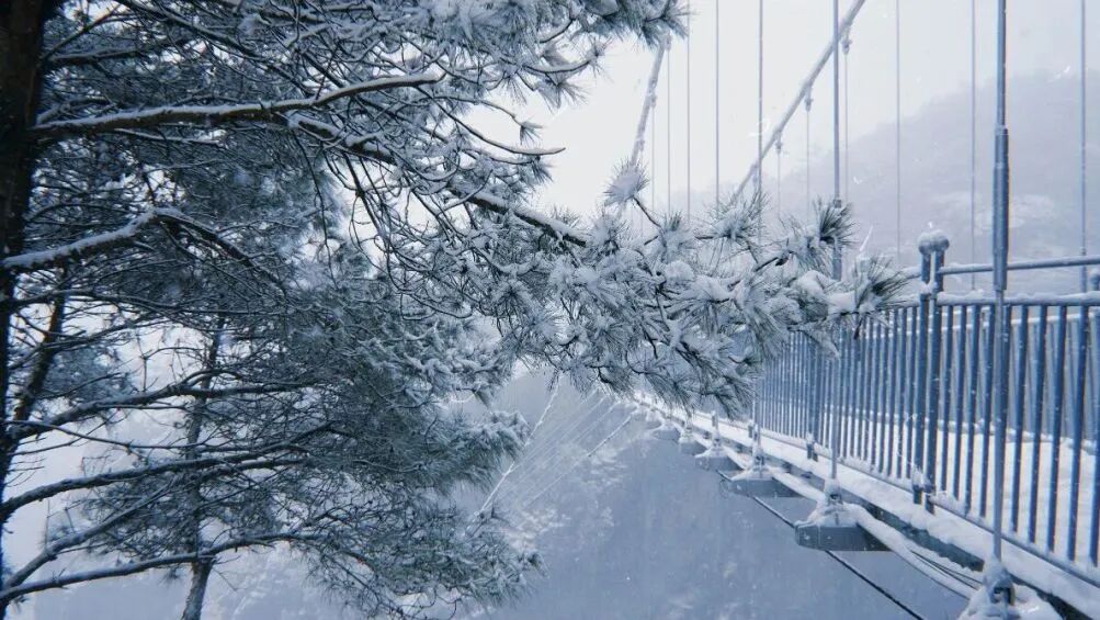 来到位于平江南江镇的天岳幕阜山景区,你可以乘天岳索道缓缓而上,翻滚的云海与雾凇尽数入怀;你可以抓起一把地上的积雪抛向你的同伴,当然,你就会招来一阵雪弹的还击;你可以沿悬崖栈道缓缓独行,亭台楼阁覆上皑皑白雪,仿佛闯入了冬日限定的童话世界,每走一步都像踩在诗与画里,浪漫值直接拉满!