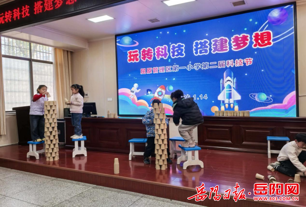 岳阳日报1月15日讯(彪丽芳 姜艳科)1月14日,屈原管理区第一小学以“玩转科技 搭建梦想”为主题的第二届校园科技节举行。活动旨在激发学生科学兴趣,培养动手能力与团队协作精神,一、二、四、六年级学生以班级为单位组队参与。