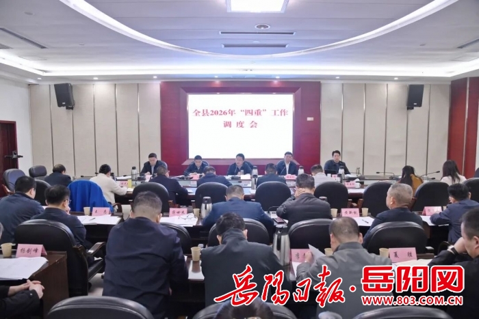 岳阳日报1月15日讯(通讯员 张千帆 周凤姣)1月14日,湘阴县委书记刘世奇主持召开专题会议,调度部署湘阴县2026年“四重”工作。县委副书记、县长张永久,县委副书记、政法委书记黄平,县人大常委会主任邓淼,县政协主席杨革新及相关县领导参加。